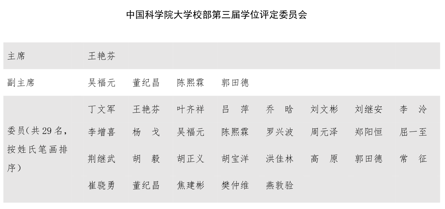 中国科学院大学校部学位评定委员会
